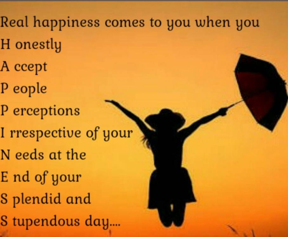 True happiness is enjoying your own company and living in peace and harmony with your body,mind and soul.To be truly happy,you don’t need other people or material things. Happiness is the consequence of personal effort and living a life of purpose..☺️